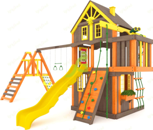 двухуровневый домик, модуль с сеткой-лазалкой, волновая горка; веревочная лестница; деревянная лестница; конструкция скалодром с камнями; качельный модуль и др.