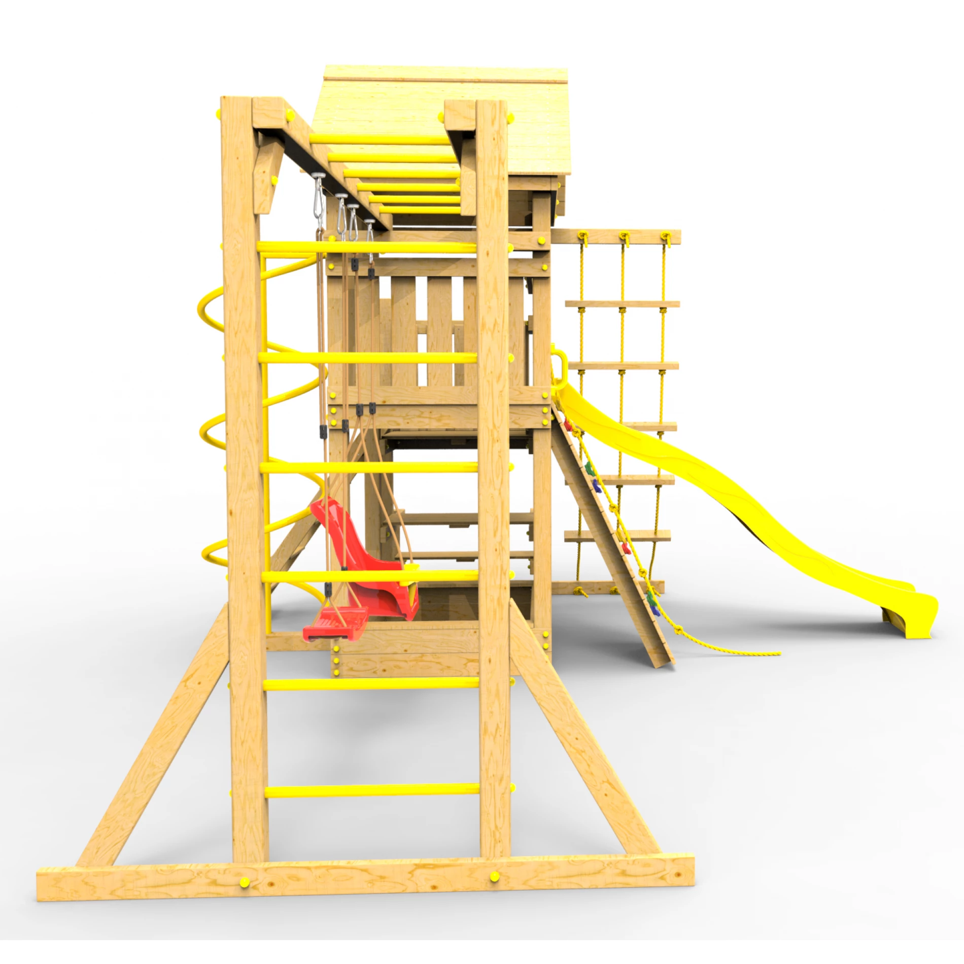 Горка, качели, крыша, рукоход, спираль, качельная балка, скалодром, шторм-трап