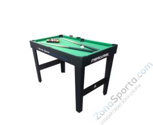 стол сягким зелёным покрытием размером 97 х 51, толщиной 4,75; ширина лузы 6,7