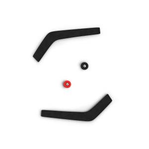 2 кия, шары, треугольник, мел, 2 биты, 2 шайбы, 2 клюшки, 2 шайбы, 2 ракетки, 2 шарика, сетка