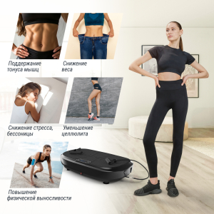 ОписаниеКупить Виброплатформe Unix Fit Quake 3D Black в нашем интернет-магазине можно по самой выгодной цене, обратившись к нашим специалистам. Так же на нашем сайте собрана самая большая база отзывов, фото и видео о виброплатформах от наших клиентов. Если хотите заказать товар недорого и с бесплатной доставкой и сборкой, тоже обращайтесь к нашим специалистам, подберём самое лучшее, что есть в России. Звоните, мы рады каждому обращению: 8 (800) 333-47-80. Виброплатформа Unix Fit Quake 3D Black обеспечивает эффективные тренировки: вибрации активируют до 90% мышц, что позволяет достигать результатов быстрее, чем при классических упражнениях. 2 эспандера в комплекте для дополнительной нагрузки на руки. Компактный и стильный дизайн позволяет легко разместить вибро тренажер в любом уголке вашего дома. Подходит для использования как новичками, так и опытными спортсменами. Платформа предлагает различные режимы вибрации и интенсивности, а также 5 автоматических программ, что позволяет адаптировать тренировки под ваши цели — от похудения до укрепления мышц. Таймер на 10 минут поможет контролировать ваши тренировки. Характеристики: